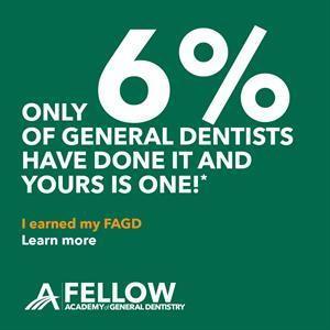 After only five years out of school, he completed all the requirements to become a Fellow of the Academy of General Dentistry(FAGD). The FAGD is an organization of approximately 35,000 dentists who are committed to continuing dental education in order to provide their patients with the best care possible.